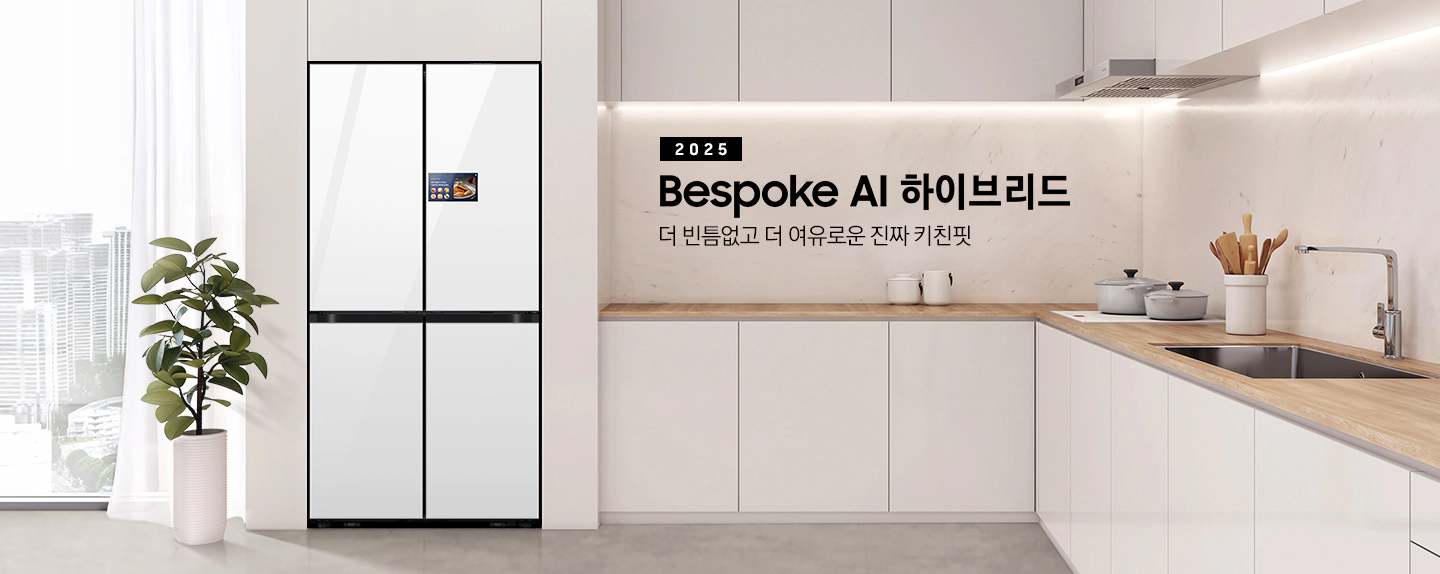 - 특징: 키친핏 설계 · 오토 오픈 도어 · AI 인버터 컴프레서 · AI 하이브리드 냉각 · AI Home 스크린